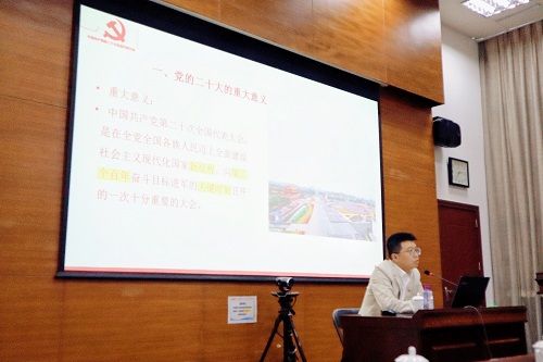 張龍教授從“黨的二十大的重大意義、黨的二十大報告的重要論斷和重大創(chuàng)新、如何準確完整學習貫徹黨的二十大精神”等三個方面做了深入淺出的分析和解讀,同時將黨的二十大精神與廣東省、珠海市的發(fā)展實際相結合,重點詮釋了特區(qū)精神,分析了珠海城市發(fā)展的優(yōu)勢,也解讀了“產(chǎn)業(yè)第一、交通提升、城市跨越、民生為要”工作總抓手的目的和意義。講座主題鮮明,點面結合,以豐富的案例、詳實的數(shù)據(jù)和通俗的講解,使大家對黨的二十大精神的核心要義、精神實質(zhì)、豐富內(nèi)涵和實踐要求有了更深入的理解。