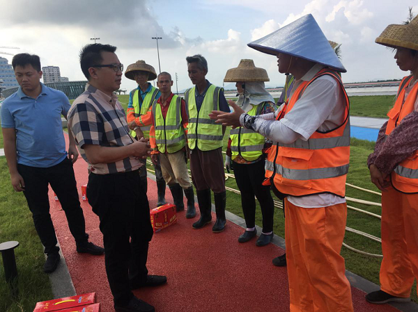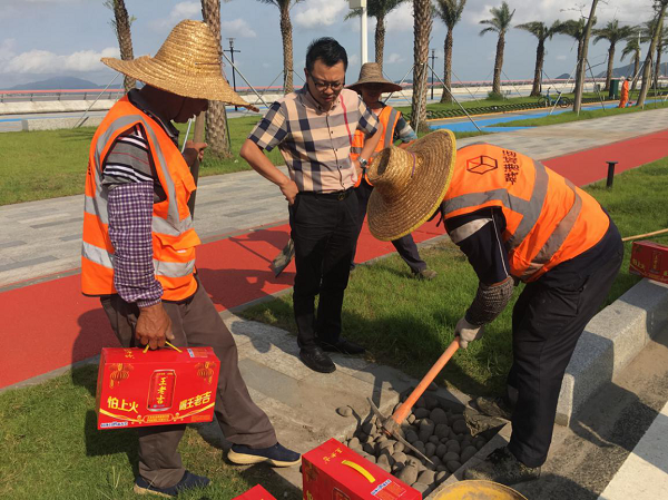 慰問組一行先后來到金山公園、金灣路,分別慰問園林綠化、市政道路管養(yǎng)、水利等一線作業(yè)員工?!?/span>你們辛苦了,感謝你們?yōu)槲拿鞒鞘懈冻龅男燎诤顾团Α?,鄒湘斌董事長對他們?yōu)榫S護城市環(huán)境衛(wèi)生作出的努力表示感謝,進一步了解了員工的工作情況及困難,并再次叮囑他們在烈日和高溫下作業(yè)要采取有效防暑降溫和安全生產(chǎn)保障措施,以健康的身體和愉悅的心情投入到工作中。