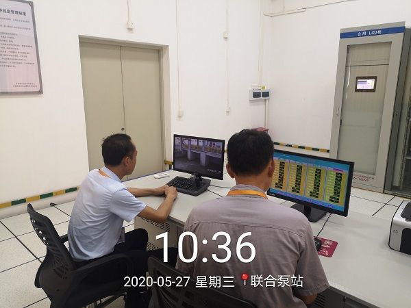 演練模擬氣象部門發(fā)布暴雨黃色預警,在接到區(qū)、鎮(zhèn)三防辦開泵預排工作指令后,城運公司安排泵站值班人員立即開泵預排,并根據(jù)雨情及內涌水位變化情況,增加水泵排澇,確保內涌水位控制在警戒水位以內,以防內澇。及時將泵站運行情況及外江、內涌水位變化等情況及時向相關部門匯報。