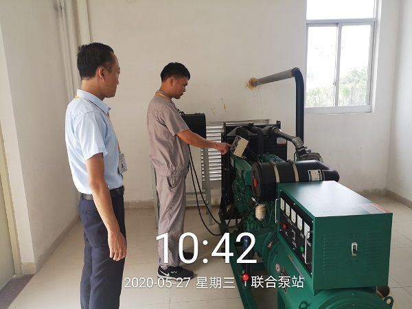 與此同時,演練還模擬暴雨、臺風天氣突發(fā)停電時,水泵無法正常工作,值班人員立即切斷市電總開關,并啟動備用發(fā)電機為水泵供電,確保泵站的照明及泵站各閘門的正常啟閉。