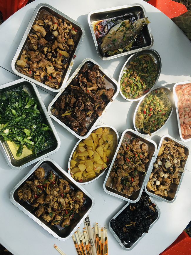 活動(dòng)結(jié)束后,大家來(lái)到燒烤、野餐場(chǎng)地,有的生火、有的配調(diào)料,洗菜、炒菜、燒烤,忙得不亦樂(lè)乎。沒(méi)過(guò)多久,一道道香噴噴的美食就擺在了眾人面前,整個(gè)野炊燒烤現(xiàn)場(chǎng)洋溢著歡聲笑語(yǔ),其樂(lè)融融,大家庭的氛圍濃重、愜意。
