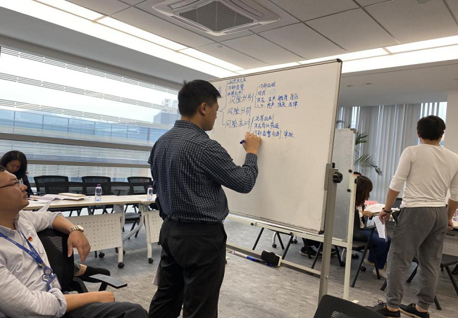 培訓(xùn)采取分組討論形式,分成四組對(duì)相關(guān)案例進(jìn)行全面復(fù)盤,并按照內(nèi)部環(huán)境、風(fēng)險(xiǎn)評(píng)估(辨識(shí)、分析)、控制活動(dòng)、信息與溝通、內(nèi)部監(jiān)督等五個(gè)方面,對(duì)案例中反映出的該公司在戰(zhàn)略、業(yè)務(wù)、資源、法務(wù)等管理中存在的重大風(fēng)險(xiǎn)、失效環(huán)節(jié)進(jìn)行全面的辨識(shí)和分析,有針對(duì)性地提出控制措施和解決方案。研討過(guò)程中,各小組推選了小組長(zhǎng),全體成員發(fā)揮各自專業(yè)優(yōu)勢(shì),開(kāi)展頭腦風(fēng)暴,集思廣益,形成各小組的分析結(jié)論,并逐一對(duì)分析成果進(jìn)行了講解和展示?;顒?dòng)現(xiàn)場(chǎng)氣氛熱烈,討論充分,各小組站在內(nèi)部控制獨(dú)特視角,指出了很多隱藏在公司管理中的“漏洞”“死角”,特別針對(duì)制約制衡機(jī)制、分權(quán)管理、監(jiān)督審核的重要意義和完善方案提出了獨(dú)到的見(jiàn)解。在最后的自評(píng)打分環(huán)節(jié),各小組還特別針對(duì)小組成員的參與程度、分工協(xié)作、溝通交流等情況進(jìn)行了自評(píng),為下一步加強(qiáng)跨部門、跨單位的良好溝通、互動(dòng)開(kāi)了一個(gè)好頭。