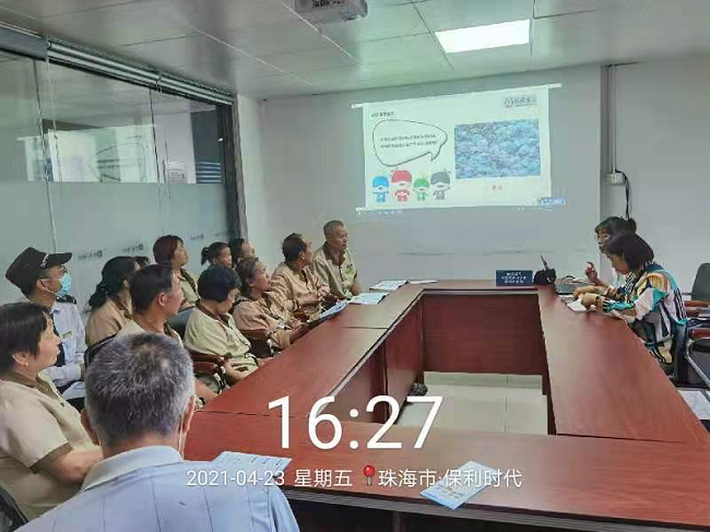 4月23日、24日下午聯(lián)港公司垃圾分類項目宣講員到保利時代、中海左岸嵐庭小區(qū)開展垃圾分類專題培訓,保利時代、中海左岸嵐庭物業(yè)管理層和保潔隊伍等共計50人,分成兩批參訓。聯(lián)港公司垃圾分類項目宣講員受邀前往現(xiàn)場作《垃圾分一分金灣美十分》主題培訓。