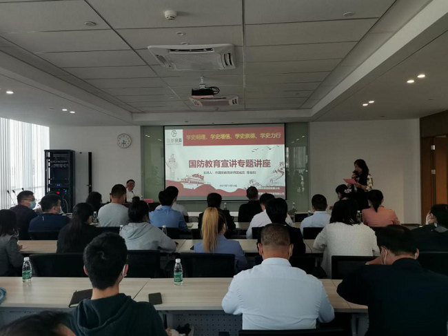 為深入學(xué)習(xí)貫徹習(xí)近平總書(shū)記在慶祝中國(guó)共產(chǎn)黨成立100周年大會(huì)上的重要講話精神,落實(shí)《中華人民共和國(guó)國(guó)防法》和《廣東省國(guó)防教育條例》等法律法規(guī),結(jié)合公司黨史學(xué)習(xí)教育總體安排,11月10日下午在公司701會(huì)議室舉辦了國(guó)防教育專(zhuān)題講座,公司副總經(jīng)理周漢強(qiáng)出席,黨支部副書(shū)記、監(jiān)事長(zhǎng)邱影主持了講座。