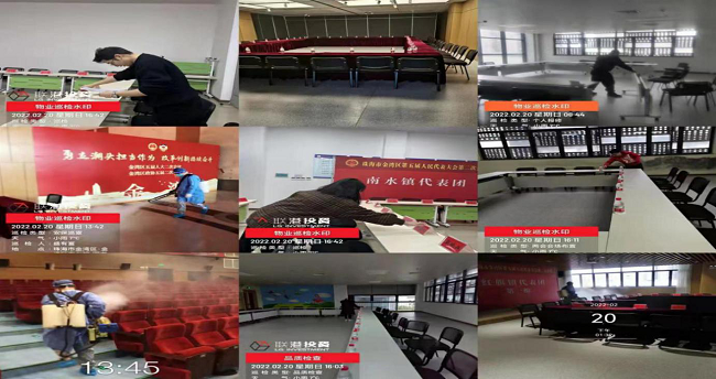 五是保潔工作到位。針對會議前期下雨的天氣狀況,在會場門口鋪設(shè)防滑墊,保障會場干爽整潔;會前做好會場全面清潔工作,重點(diǎn)保潔區(qū)域安排固定及機(jī)動(dòng)保潔人員;會中巡查各重點(diǎn)區(qū)域(洗手間、電梯間、會場門口等)衛(wèi)生狀況,發(fā)現(xiàn)問題及時(shí)安排當(dāng)班保潔處理;會后,迅速組織保潔人員打掃會場、清理垃圾、擺放桌椅,保持會場清潔整齊。