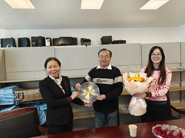 歡送會(huì)中,聶曉琴和鄺健苗同志分別為理輝同志獻(xiàn)上鮮花及退休紀(jì)念品,各同事回顧了一起工作的日子,并合影留念。