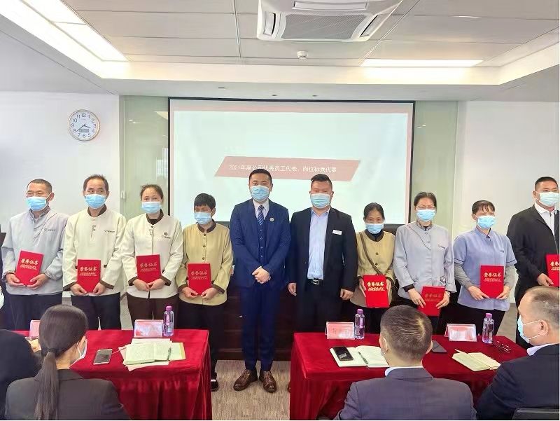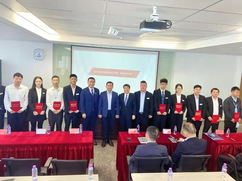 會上,龍總帶領(lǐng)資產(chǎn)公司班子成員為獲得2021年度優(yōu)秀員工、崗位標(biāo)兵和疫情防控先進(jìn)個人稱號的代表頒發(fā)了榮譽(yù)證書,并同他們親切合影留念。