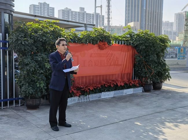 來自聯(lián)港城運(yùn)綠化部的陳婷作為戶外勞動(dòng)者代表發(fā)言,愛心驛站的建設(shè)是分享,也是共享,傳遞愛心,傳遞暖意,感謝區(qū)總工會(huì)和集團(tuán)工會(huì)為大家創(chuàng)造了如此美好的“暖心之家”,讓他們享受到“熱可納涼、冷可取暖、累可歇腳、渴可飲水”等服務(wù)。