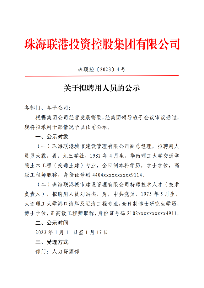 珠聯(lián)控〔2023〕4號(hào) 關(guān)于擬聘用人員的公示